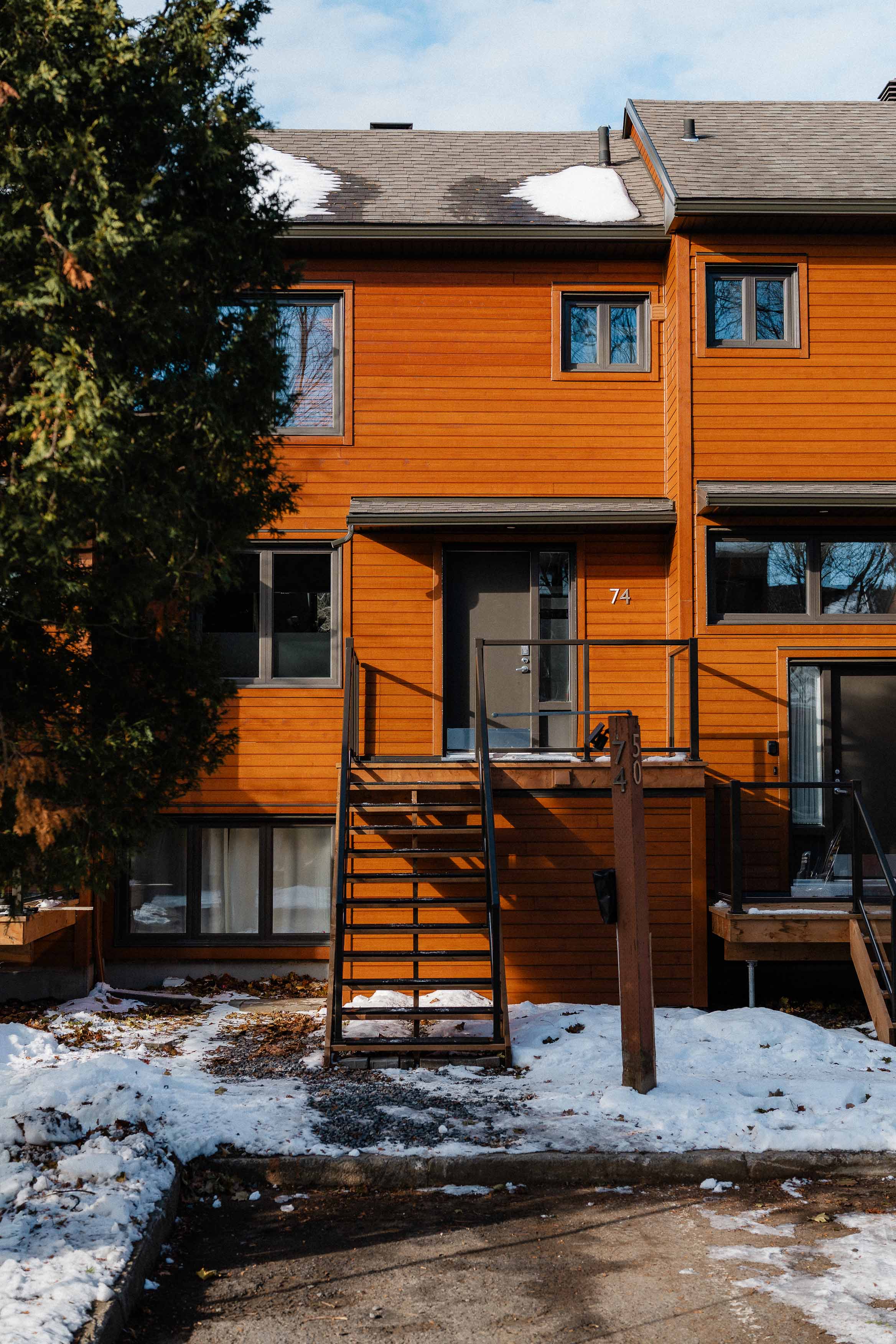 Bordé d’arbres, ce projet de toit-terrasse visait à réduire l’accumulation de débris végétaux au printemps et à créer un espace habitable trois saisons, sans impacter la vue du fleuve et de la rivière, la luminosité intérieure de la résidence et son architecture.