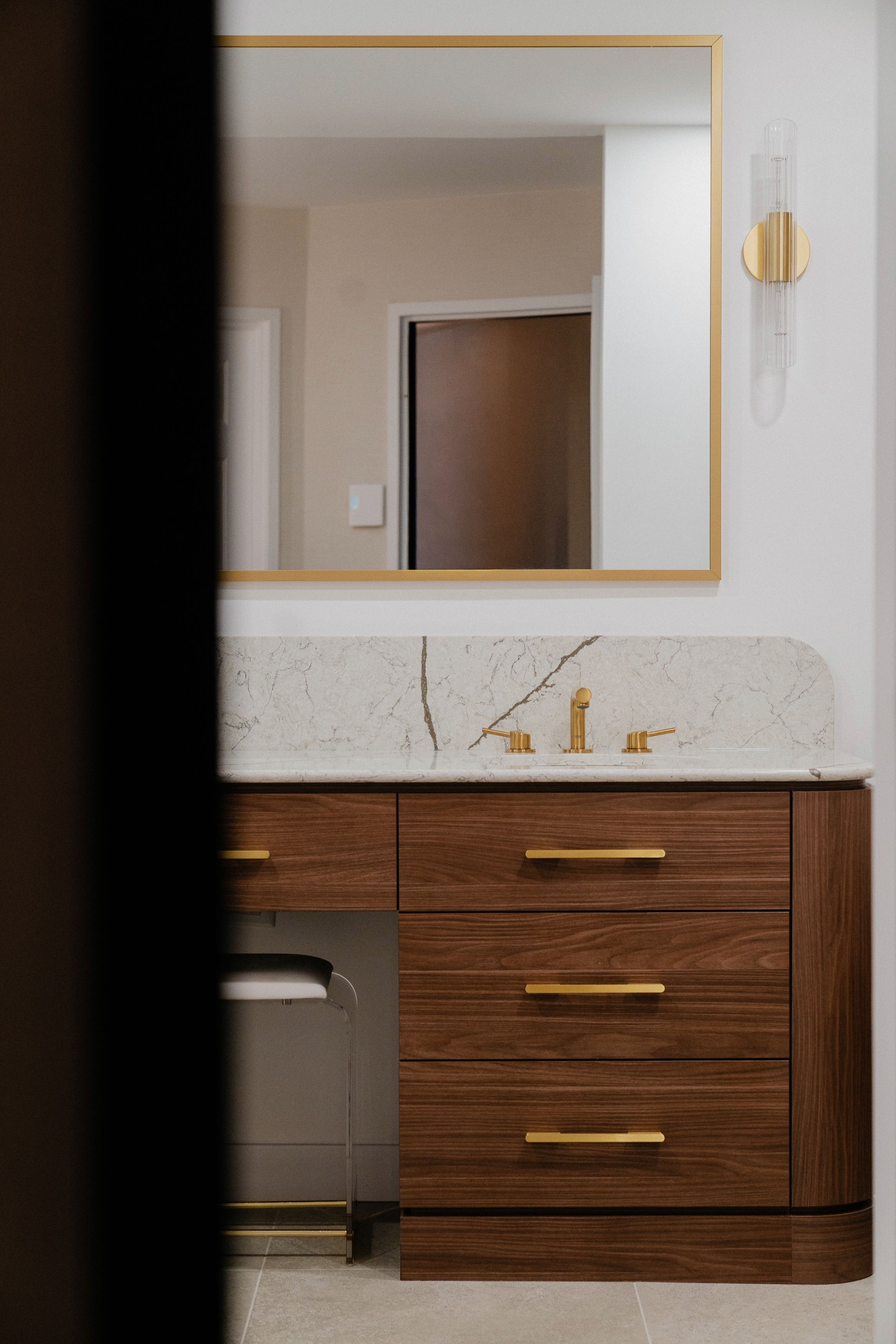 Dans ce condo niché dans le boisé des Augustines, l’intervention visait à révéler un espace riche et généreux en repensant entièrement deux salles de bain.